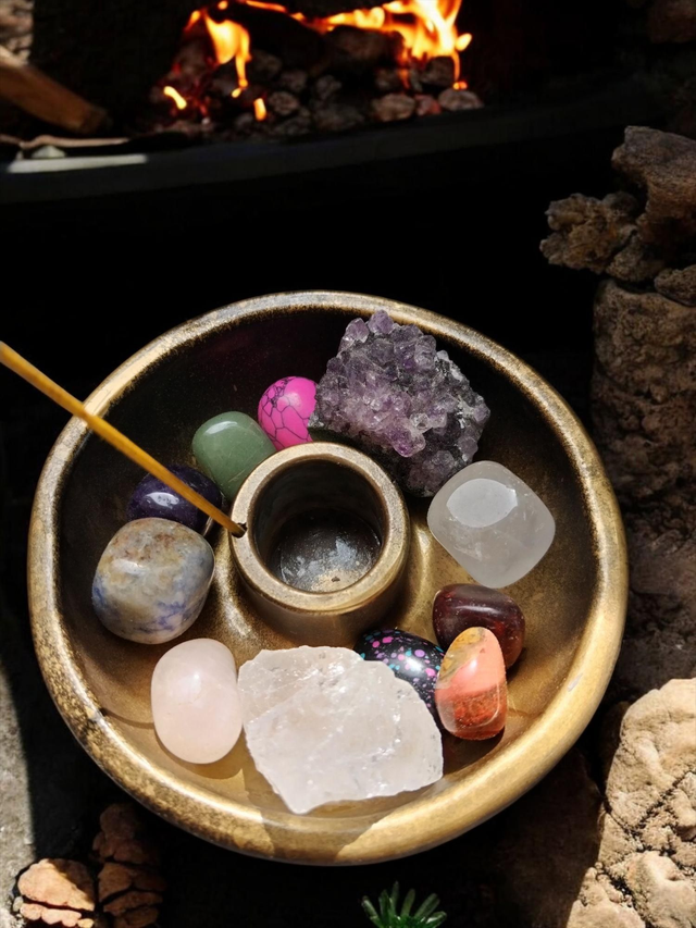 Käsin maalattu keraaminen kynttilänjalka / suitsukealusta. Tähän monikäyttöiseen alustaan voit lisäksi laittaa niin kiviä, yrttejä, kuin erilaisia loitsuaineksia. ✨ Kippo ei kuitenkaan kestä vettä, otathan tämän huomioon ✨