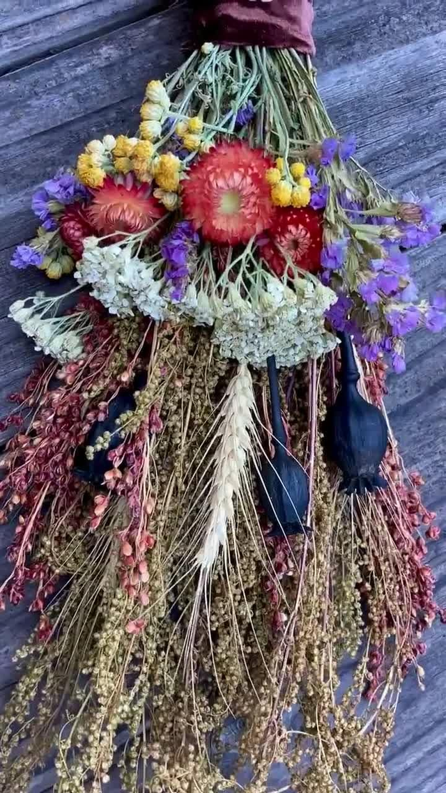 handmade unique witch broom. I use birch, juniper, pine, and seasonal dried flowers as materials. Each broom comes with a protective amulet. Please note that I make all orders by hand from scratch, so the delivery time varies depending on the order, 2-4 weeks. So please be patient. If you have any wishes, for example regarding the flowers or colors of the broom, please send me an email at korvenkujannoita@gmail.com