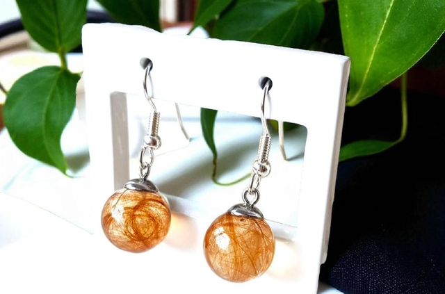Riipus on läpinäkyvää, kovaa koruhartsia ja karvat on valettu sen sisään. Riipuksen halkaisija 25mmx25mm , ketju 45 cm. Metalliosat hopeaa tai ruostumatonta terästä.