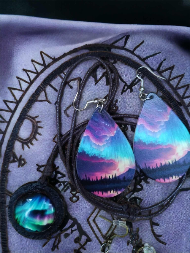 Revontuli korusetti riipus + korvakorut/Aurora jewelry set